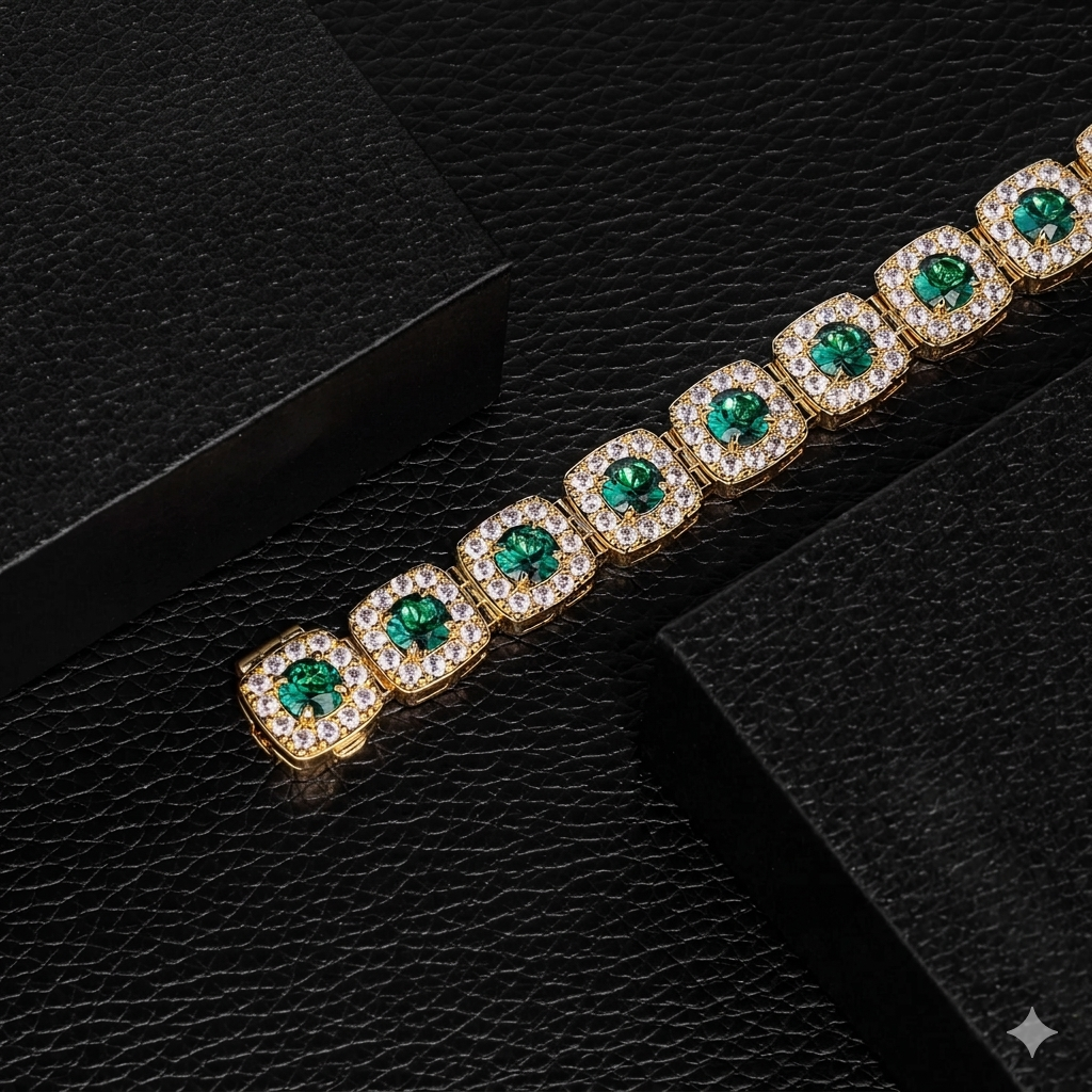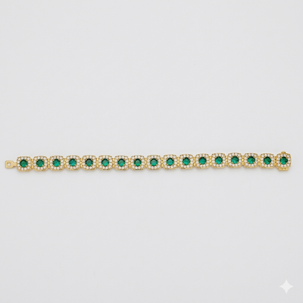 Inspirado en la riqueza natural de Colombia, este pulso rinde homenaje a la profundidad y el misterio de sus esmeraldas. Cada piedra verde refleja la intensidad de estas gemas únicas, reconocidas por su color vibrante. El dorado que las envuelve evoca la calidez de la tierra, mientras sus destellos capturan la luz como el sol sobre los paisajes colombianos.