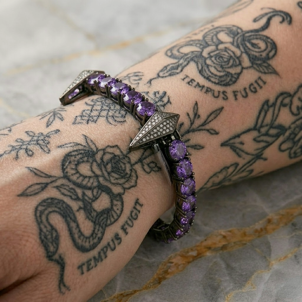 Nacida de la armonía entre luz y sombra, esta joya captura el lenguaje silencioso de los colores que se encuentran en la noche y el día. Cada eslabón refleja una transición sutil: destellos claros que evocan la luz suave del amanecer, contrastados con tonos profundos que recuerdan la serenidad del crepúsculo.